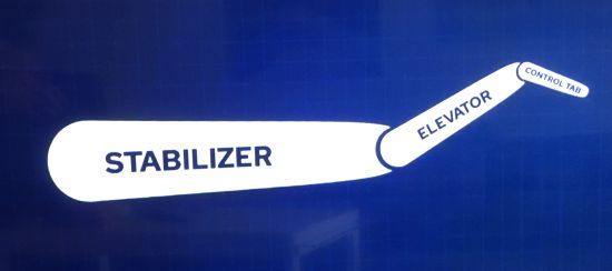 Låt oss nu titta närmare på hur ett system med control tabs fungerar (ofta säger man elevator control tab eller aileron control tab eller rudder control tab (rudder betyder sidoroder) för att ange på vilket roder de sitter hela systemet kallas, som framgått ovan, för "lättroder"). "Stabilizer" (i bilderna nedan) betyder "stabilisator" och utgörs av den främre delen av de horisontella små "vingarna" i stjärten. Stabilisatorn är fast på mindre flygplan men kan på jetliners vridas med hjälp av en domkraft (ofta elektrisk). Detta kallas stabilisatortrim och förklaras närmare i huvudtexten om Boeing Max. Orsaken till att man har en sådan trim är att tyngdpunkten kan ha väldigt olika lägen på ett passagerarplan, beroende på hur det är lastat och hur mycket bränsle som finns ombord (om det handlar om en långflygning kanske man vid start har 110 ton bränsle ombord och när man landar kanske man har 12 ton kvar). Dessutom flyttar sig lyftkraftcentrum (den punkt i vilken summan av alla planets lyftkrafter verkar) beroende på flygplanets fart, hur mycket klaff man har ute, huruvida landningsstället är utfällt eller ej etc. Höjdrodret räcker inte till för att klara dessa stora variationer i stabilitet, vilken huvudsakligen beror på det longitudinella (i flygkroppens riktning) avståndet mellan tyngdpunkt och lyftkraftcentrum (se min artikel om flygplans stabilitet) och därför används stabilisatortrim (där således hela stabilisatorn vrids) för att kompensera bort dessa variationer. Längst bak på stabilisatorn sitter höjdrodret eller höjdrodren (elevator), se bild 3 (större flygplan har ofta två höjdroder, ett på vänster del av stabilisatorn och ett på höger del). Detta/dessa manövreras av piloternas spakar eller joysticks och kontrollerar planet i pitchled (nos upp/nos ner vid horisontell flygning). Drar man åt sig spaken höjs flygplanets nos och skjuter man fram spaken sänks nosen.
