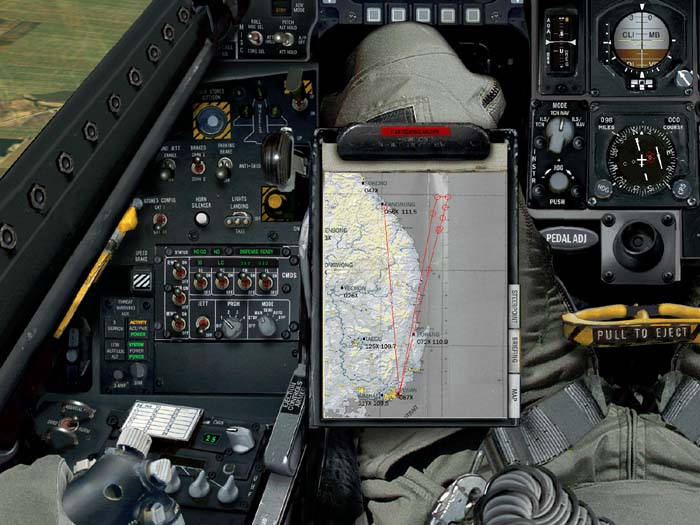 Precis som i andra bra simulatorer så fungerar knappar etc på instrumentbrädan och man kan även titta åt sidan och nedåt och använda de knappar och rattar som finns där (man använder musen för att trycka på knappar och vrida på omkopplare). Man ställer in frekvenser på radion och har fantastiska möjligheter till radiokommunikation. Det finns AWACS-plan i luften hela tiden som kan ge information om fientliga plan och var eventuella egna tankplan finns (ja man kan faktiskt lufttanka men det är mycket svårt förmodligen t o m svårare än i verkligheten) etc. Man hör sig själv anropa och kan välja mellan olika röster (både manliga och kvinnliga). Man kan kommunicera med de andra planen i den egna flighten och kan kommendera (om man är ledare för flighten) formationsflygning av olika typer, ange vilka mål de skall anfalla med mera eller fråga hur mycket bränsle och vapen medlemmarna i den egna flighten har kvar och deras status (när det gäller skador) etc. Kommunikationen sker genom knapptryckningar (se nedan).