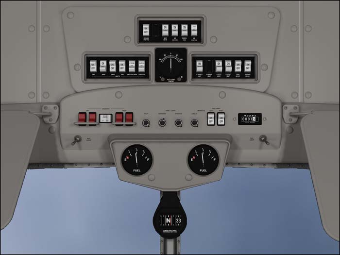 Man kan scrolla så att man ser mer av panelen -- scrollar man åt höger ser man andrepilotens panel också, där vissa viktiga motorinstrument finns.