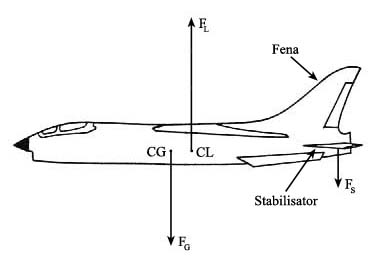 Ett plan som hela tiden vill sänka nosen är givetvis oflygbart. För att motverka rotationen enligt ovan måste man införa en ytterligare kraft. Därför har konventionella flygplan en stabilisator (små horisontella vingar i stjärtpartiet), som ger en nedåtriktad kraft, FS (se bild 1). Denna kraft vill vrida planet medurs medan FL vill vrida planet moturs. FS och FL motverkar således varandras vridmoment. Eftersom stabilisatorns area är avsevärt mindre än huvudvingarnas, blir kraften FS givetvis mycket mindre än FL. Men eftersom momentarmen för FS, relativt CG, är betydligt större, kan denna kraft ändå motverka vridmomentet från FL. Om FL:s och FS:s momentarmar är rL respektive rS, balanserar momenten varandra om: