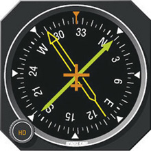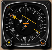 Till vänster om VOR-instrumentet sitter en radiokompass (ADF) som kan visa riktningar till NDB:er eller VOR:er. Längst ned, både till höger och vänster, sitter omkopplarna med vars hjälp vi kan bestämma om vi vill koppla respektive nål till en NDB- eller VOR-mottagare (vertikalt ADF, horisontellt VOR).