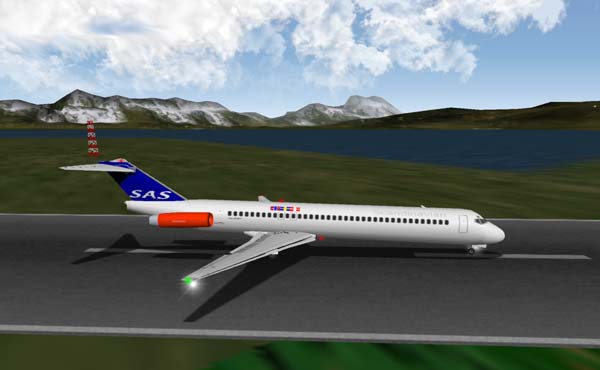 Allmänt så tycker jag nog att X-plane ger de mest realistiska flygegenskaperna (min egen flygerfarenhet är några års segelflygande plus att jag spakat olika småflygplan ett antal gånger). När man lättar och kommer upp i lyften så får man precis den där verklighetstrogna känslan av att "glida på luft" ungefär som en båt som planar på vatten. Dessutom har X-plane nog den bästa simuleringen av olika väder hos någon simulator. Man kan ställa in olika siktförhållanden, molnhöjd och molnbas, vindstyrka, temperatur och turbulens. Ställer man t ex in temperatur under noll och nederbörd så får man automatiskt snö, Banorna blir hala och snön driver över banan i vindens riktning. Men inte nog med det, i programmet finns också något som kallas "real weather". Ställer man in detta så hämtar programmet med jämna mellanrum data från en väderdatabas, i vilken all världens väder finns, och ställer sedan in det väder som just för tillfället råder på den plats där man är (förutsättningen är att man är uppkopplad på Internet dessutom krävs att man laddar hem ett gratisprogram). Från början var inte grafiken i X-Plane så imponerande, men i den senaste verisionen har den förbättrats avsevärt. Större vägar, järnvägar och kraftledningar finns inlagda i de senaste versionerna av X-Plane. och på låg höjd ser man hur bilar, bussar etc kör på vägarna. Instrumentbrädan i MD-80:n nedan har jag själv gjort i PlaneMaker. Resultatet blir faktiskt ganska bra, om jag får säga det själv. Jag har försökt göra instrumenteringen så lik en DC-9:a som möjligt, eftersom de moderna instrumenten i en MD-80 inte är lika roliga tycker jag (MD-80 är en modernare version av DC-9). Det är för automatiserat. Jag föredrar att uppleva hur det var att spaka ett passagerarplan när man fick göra mer manuellt än idag (på den tid när män fortfarande var män).På väg in mot bana 12 på Alta i Nordnorge. Observera att flaps och slats delvis är ute (de senare på vingens framkant).Man skulle kunna säga hur mycket som helst om X-plane. Där finns som sagt tiotusentals navigeringshjälpmedel (NDB, VOR, ILS etc). Har man tillgång till riktiga flygkartor blir det hela mycket realistiskt. De olika radiofyrarnas etc frekvenser stämmer med verkligheten och man kan även lyssna på deras morsesignaler (precis som i verkligheten), vilket man bör göra för att vara säker på att man ställt in rätt fyr. Saknas några fyrar kan man enkelt lä,gga till dem genom WorldMaker.